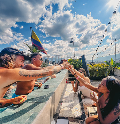 If you’re looking for an authentic traveler vibe and the opportunity to connect with people from all over the world, our Best Hostel in Medellín is your place. Strategically located in El Poblado, Los Patios’ hostel in Poblado has been recognized with international awards as the best in the world on Hostelworld. With 8 years of experience, we know what travelers need: impeccable private rooms and dorms, vibrant common areas, daily activities, and a team that will make you feel like part of the family. Imagine ending your festival day sharing stories with other travelers on our rooftop with spectacular views.